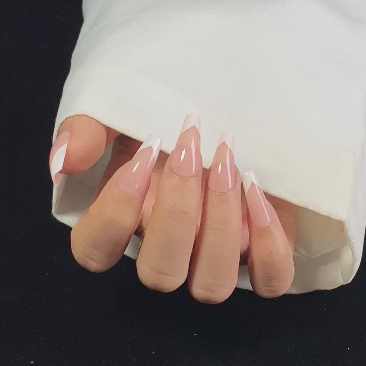 đŸ€ Ballerine Chic — Coffin Long French est un press-on Soft-Gel Ă  la forme coffin long (ballerina), rehaussĂ© d’une French manucure nette et lumineuse. Sa silhouette allonge Ă©lĂ©gamment les doigts et offre un rendu sobre, chic et sophistiquĂ©, idĂ©al du quotidien aux soirĂ©es.