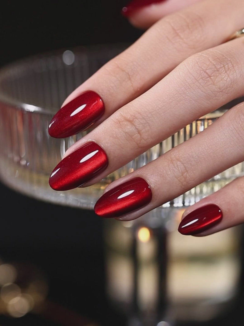 🔮 🍷 Bordeaux Félin déploie un effet Cat Eye rouge vin aux reflets magnétiques profonds sur une forme amande qui élance la main. Teinte festive et sophistiquée, halo lumineux, rendu chic et assumé du dîner aux soirées — effet salon immédiat, signature ONAILZ.